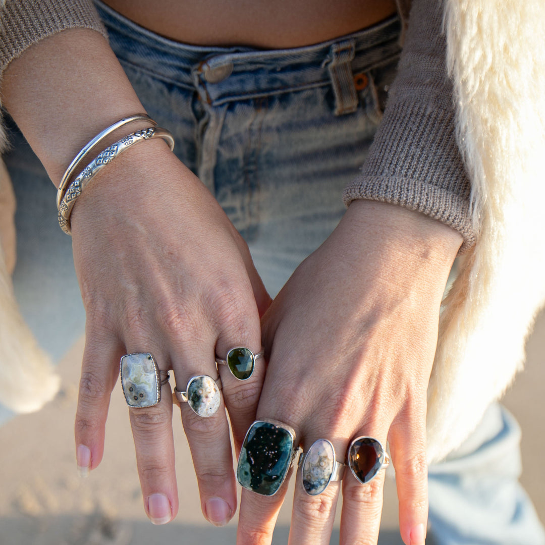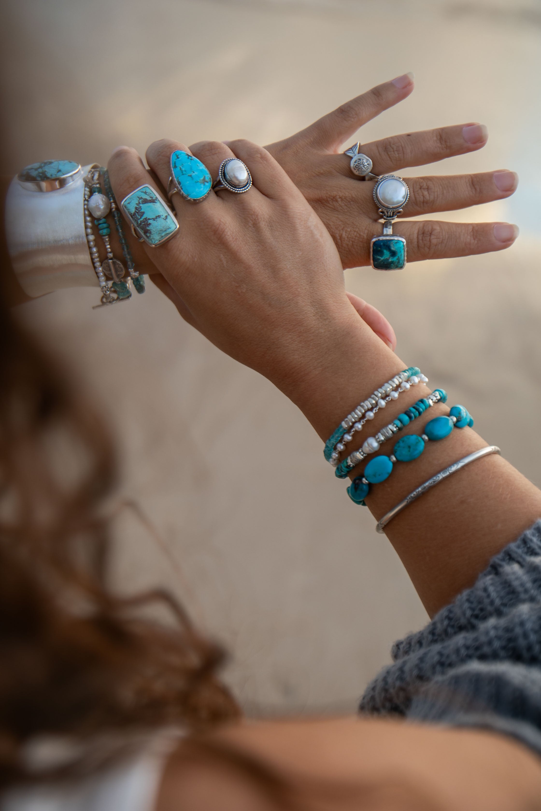 Marli designs everything in her studio in Australia. She makes all of the bespoke beaded pieces by hand and the rings, pendants and earrings she has set by wonderful family run Silvermith's in Bali.