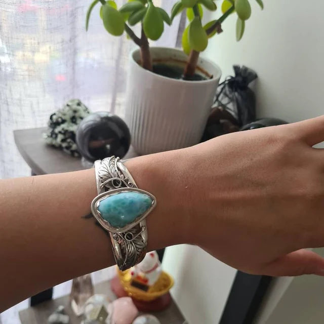 Rare, joyful and endlessly unique, Larimar is one of the worlds most coveted stones. Evoking visions of glittering clear seas and salty skin vibes it is no wonder its so well loved in our island country.