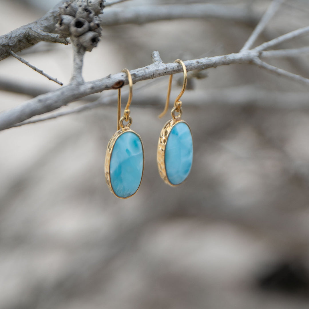 Larimar Decorative Earrings set in 92.5% Sterling Silver
