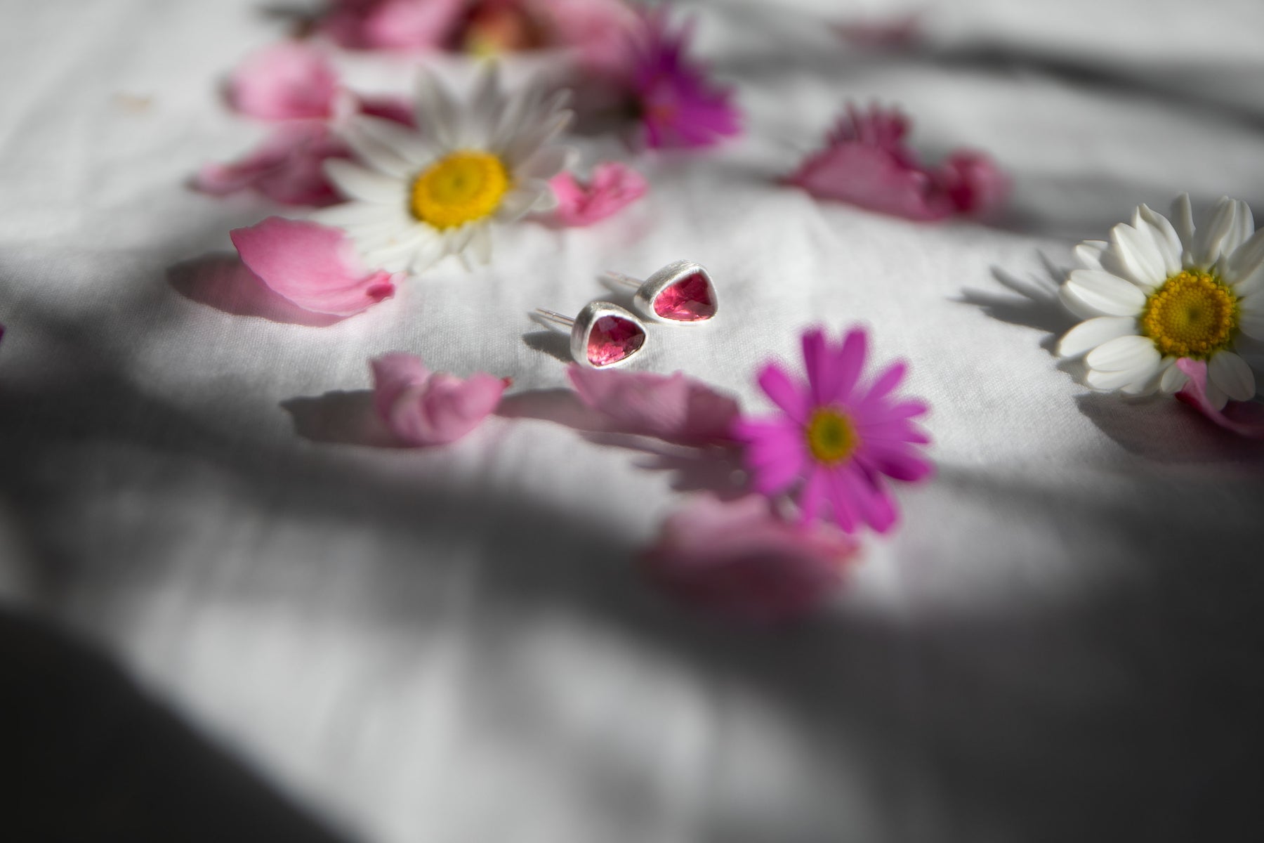 Absolutely stunning Rose Cut Pink Tourmaline Stud Earrings set in Brushed Sterling Silver.