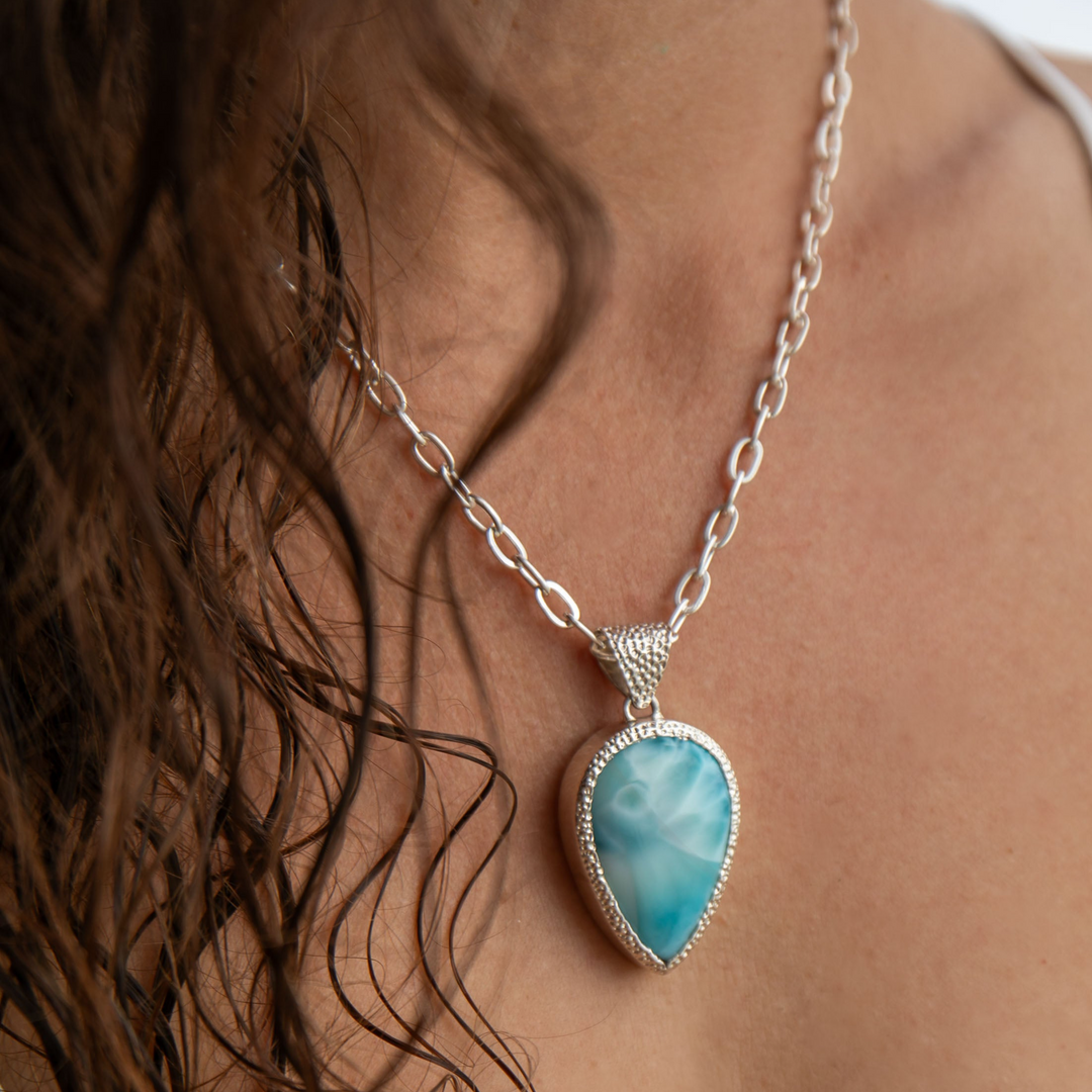 Large Teardrop Natural Leaf Jasper Ring set in Thick Beaten Sterling Silver - Size 7 US