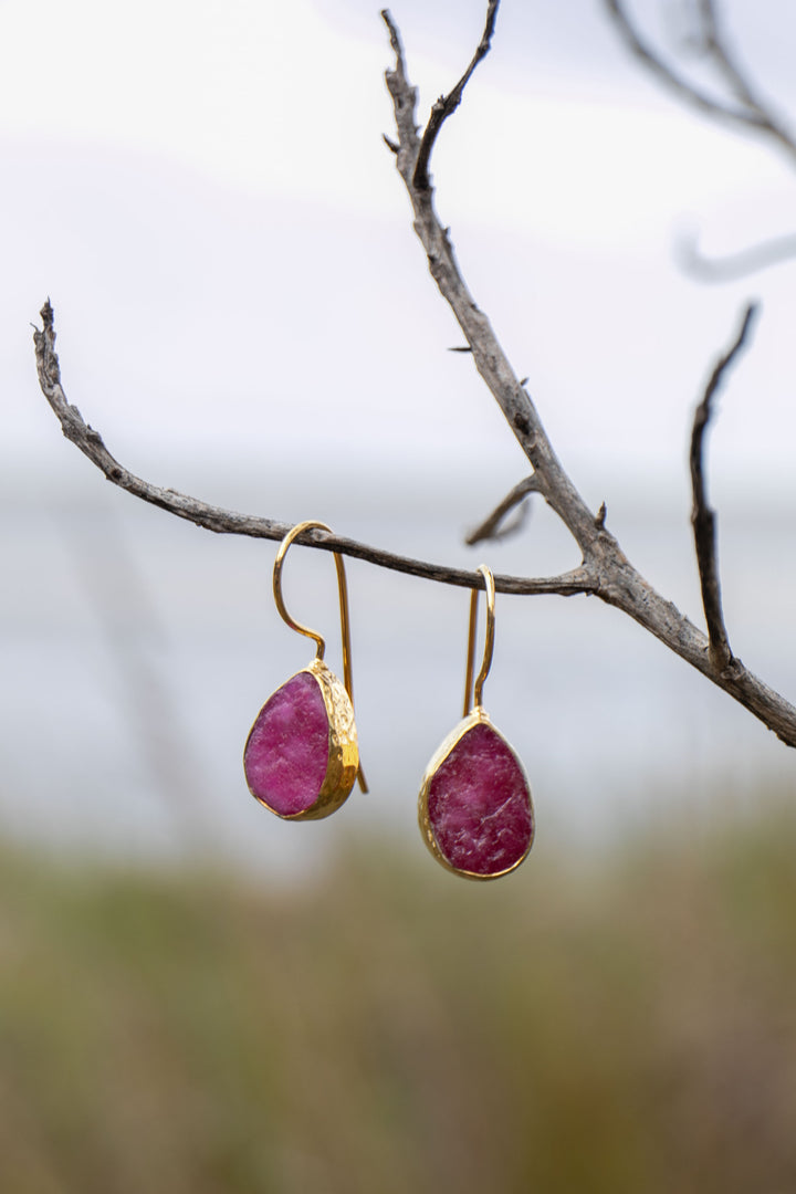 Gorgeous and Elegant High Quality Raw Ruby Necklace in 24k Gold Plated Sterling Silver.